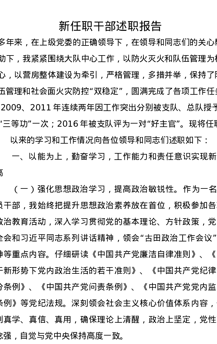 新任职干部述职报告