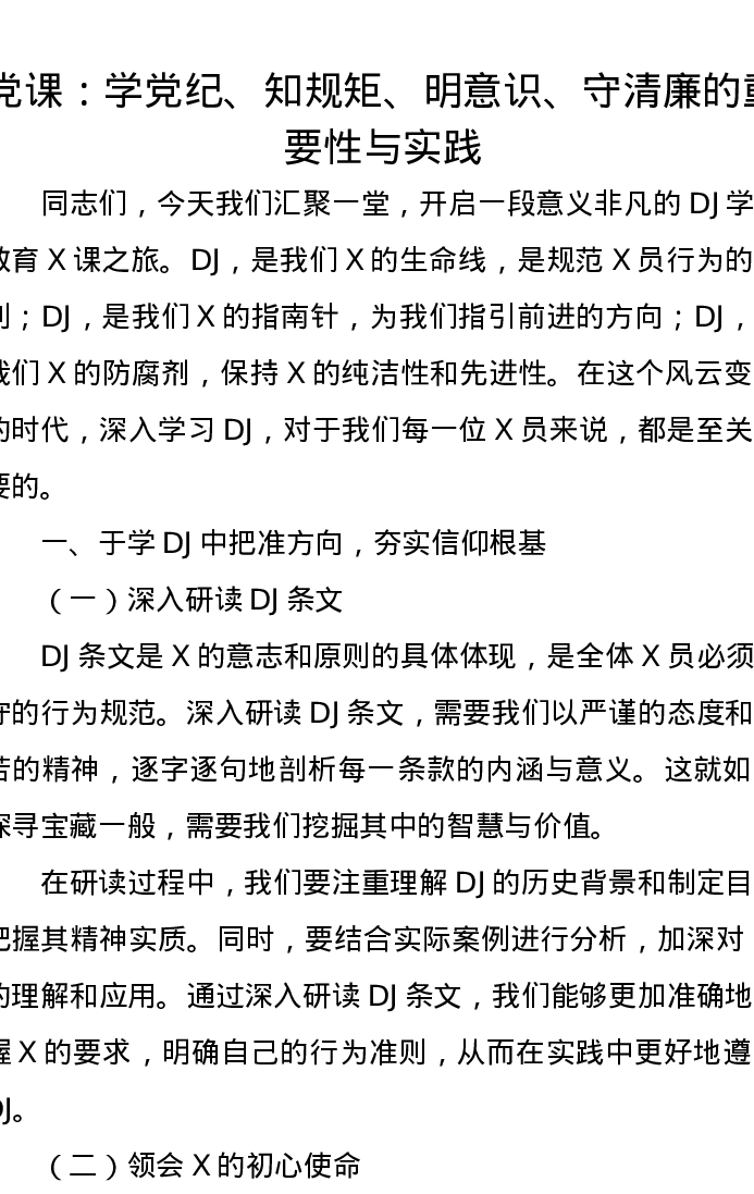 党课讲稿:学党纪、知规矩、明意识、守清廉的重要性与实践