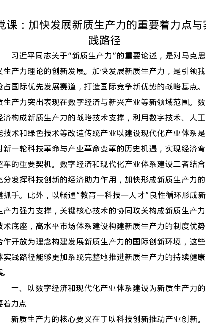 党课讲稿:加快发展新质生产力的重要着力点与实践路径