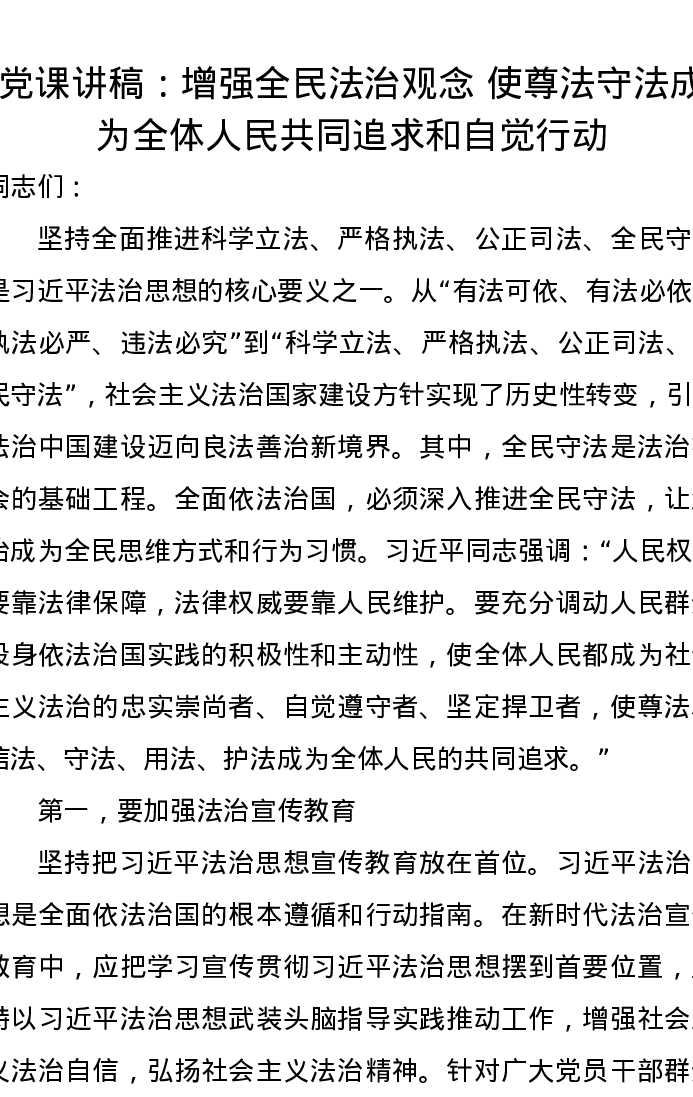 党课讲稿:增强全民法治观念使尊法守法成为全体人民共同追求和自觉行动