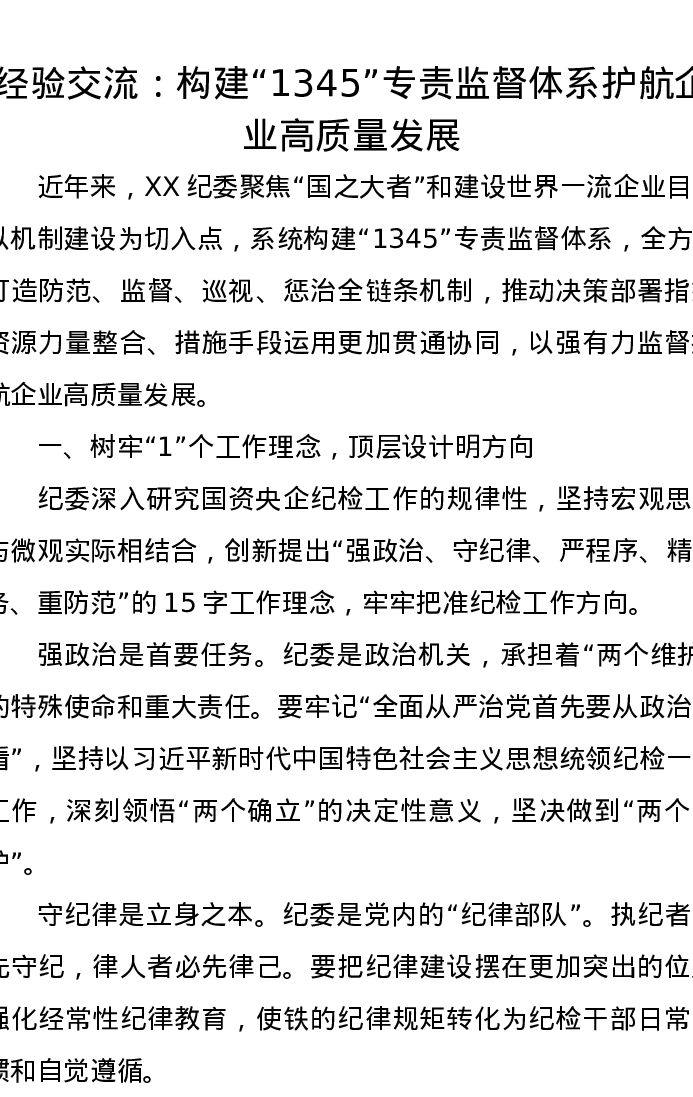 经验交流:构建“1345”专责监督体系护航企业高质量发展