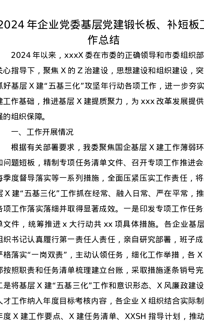 2024年企业党委基层党建锻长板、补短板工作总结