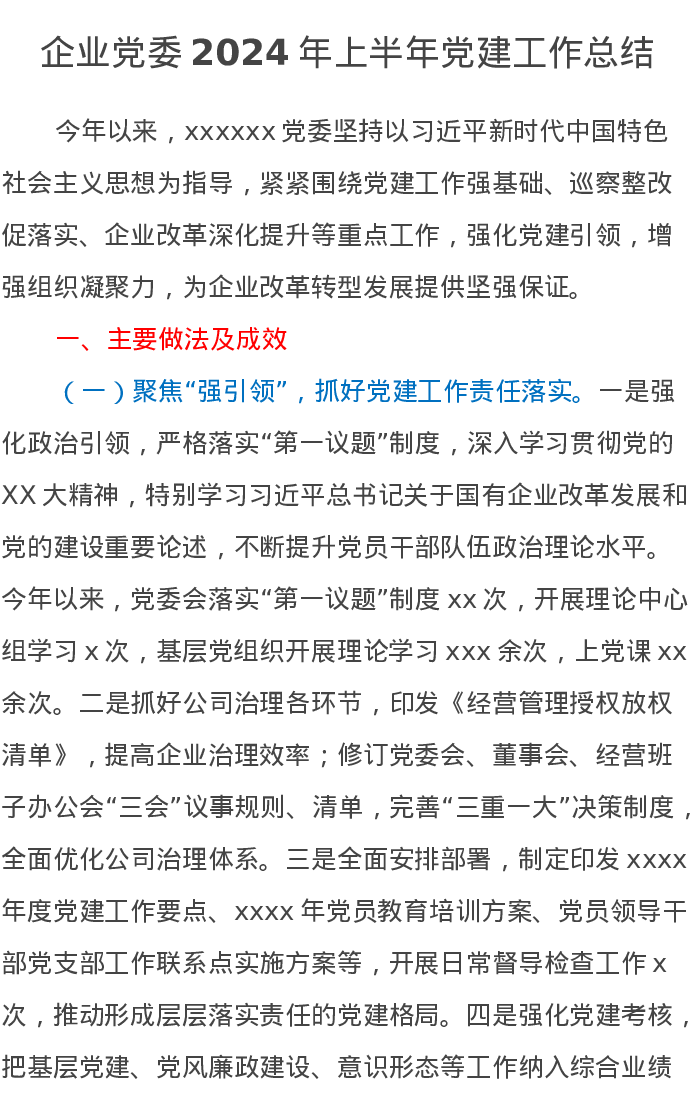 企业党委2024年上半年党建工作总结