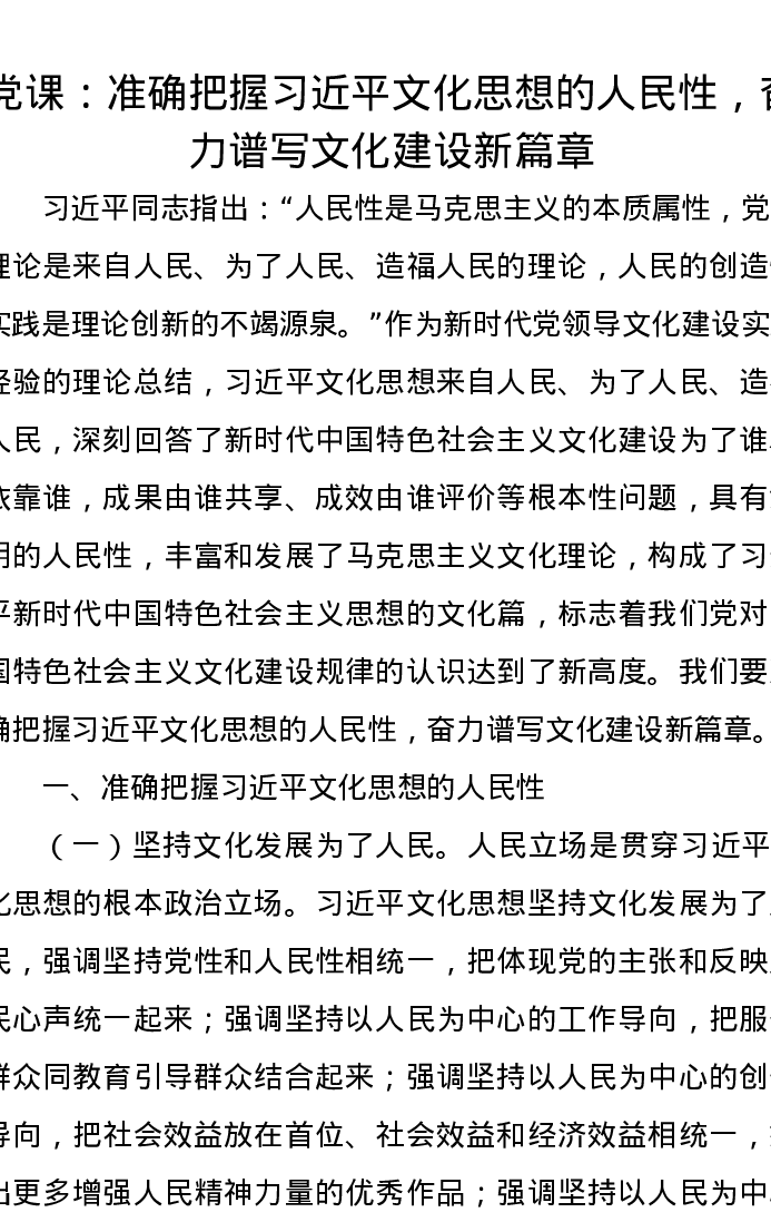 党课讲稿:准确把握习近平文化思想的人民性,奋力谱写文化建设新篇章