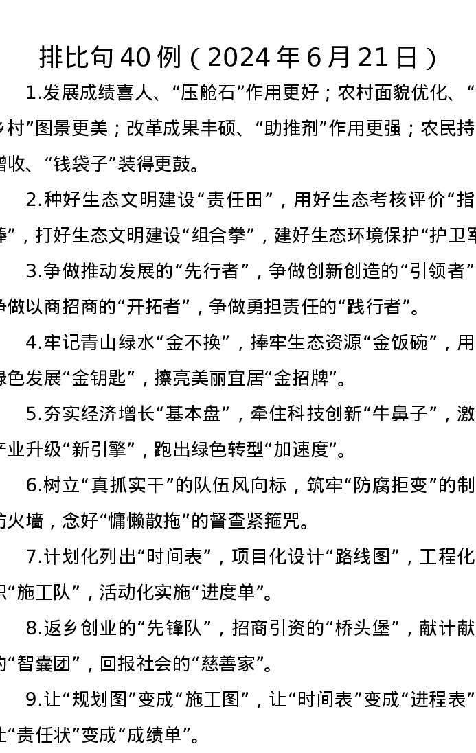 排比句40例(2024年6月21日)