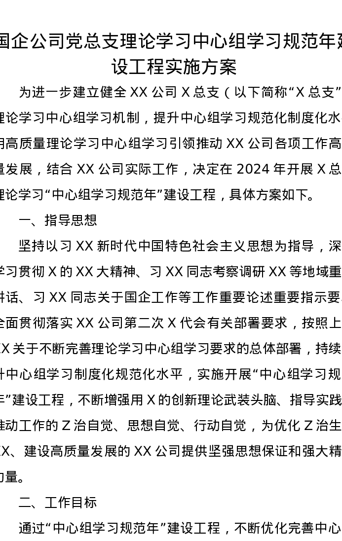 国企公司党总支理论学习中心组学习规范年建设工程实施方案