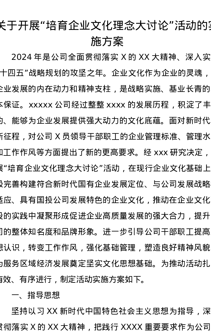 关于开展“培育企业文化理念大讨论”活动的实施方案