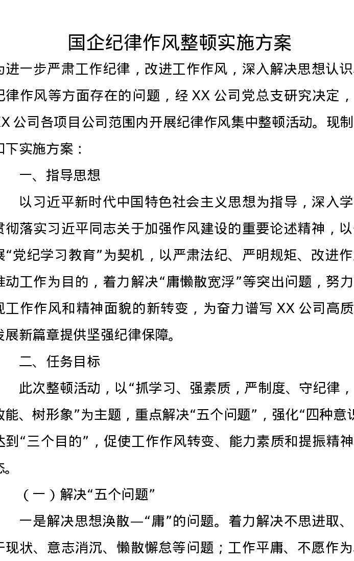 国企纪律作风整顿实施方案