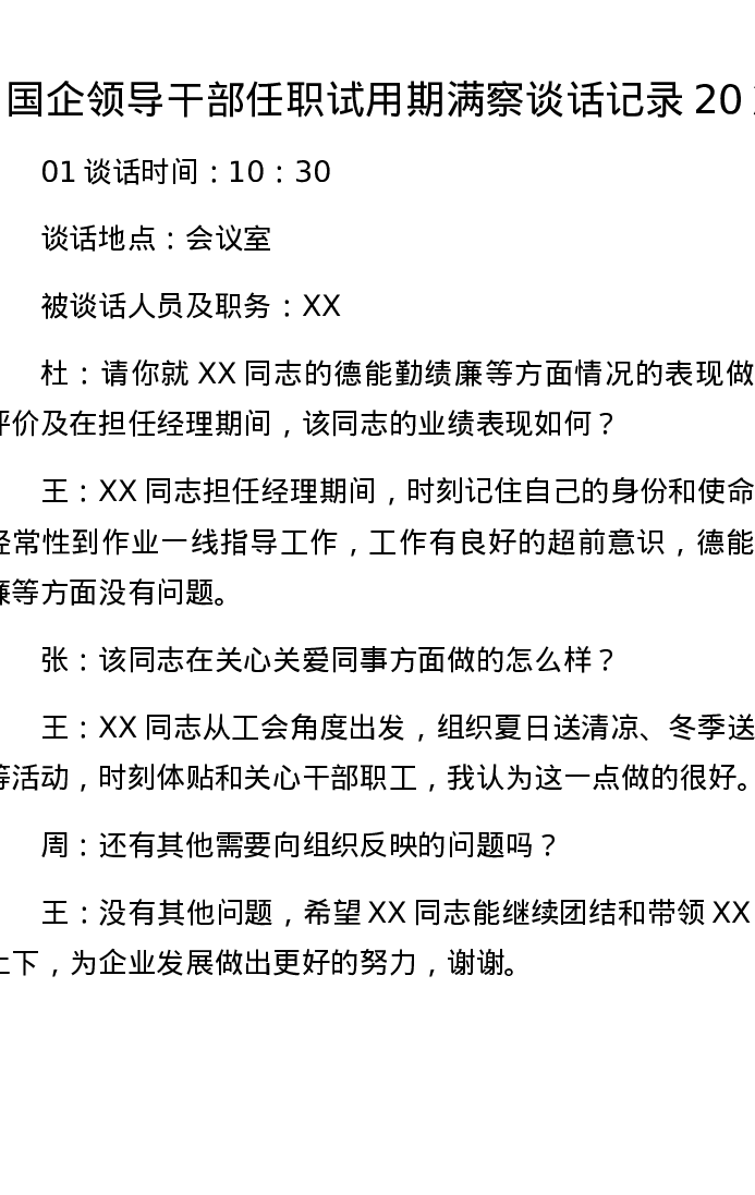 汇编:国企领导干部任职试用期满察谈话记录20篇