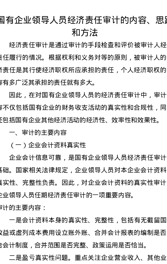 调研报告:国有企业领导人员经济责任审计的内容、思路和方法