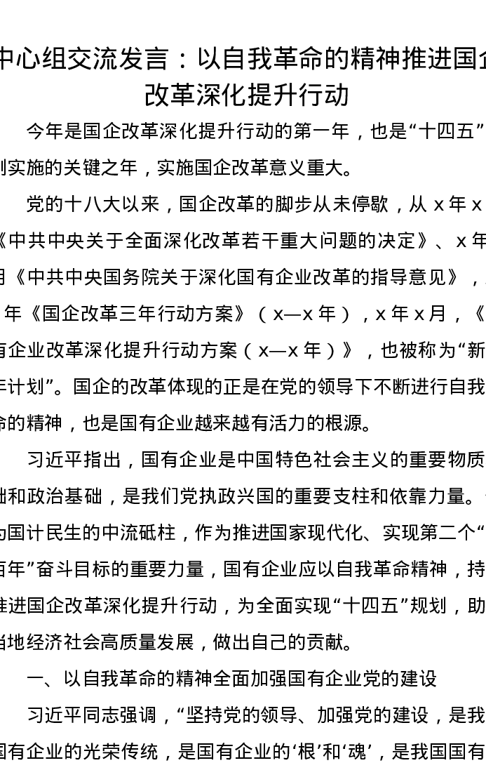 中心组交流发言:以自我革命的精神推进国企改革深化提升行动