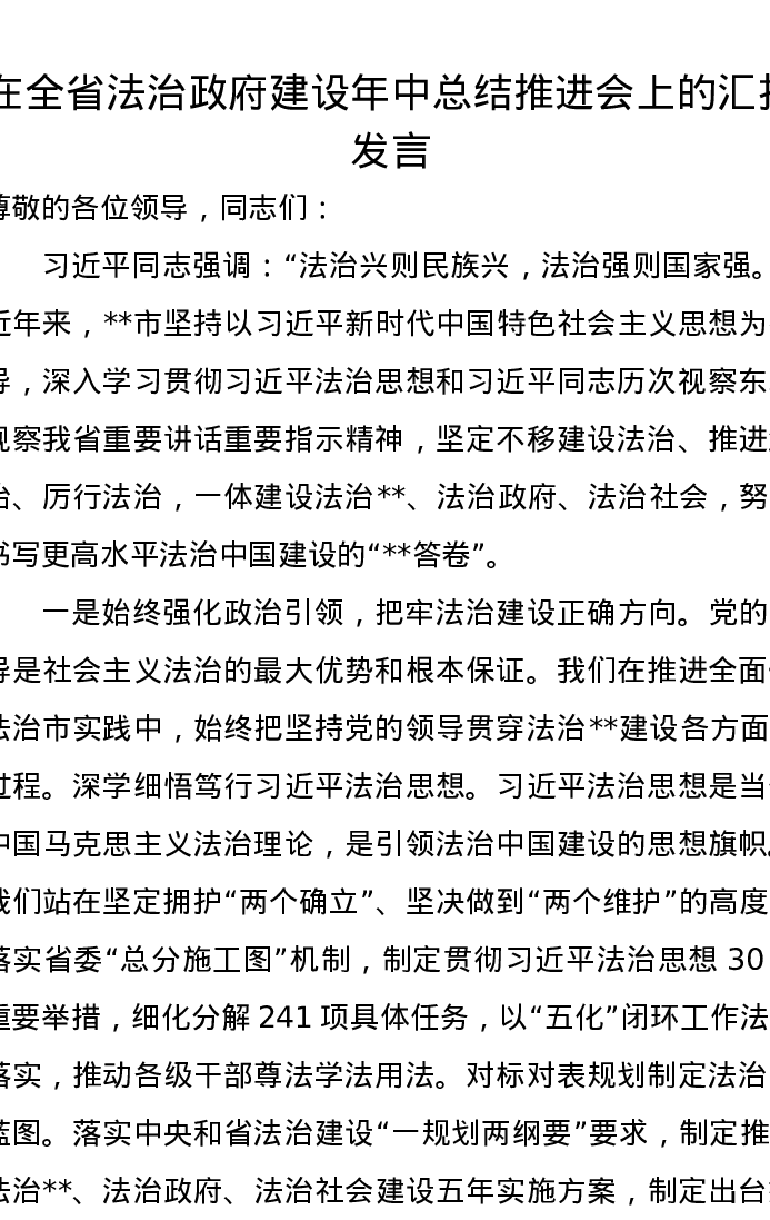 在全省法治政府建设年中总结推进会上的汇报发言