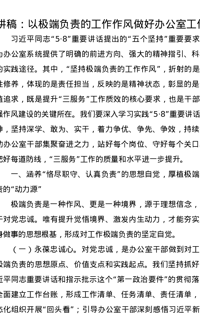 党课讲稿:以极端负责的工作作风做好办公室工作