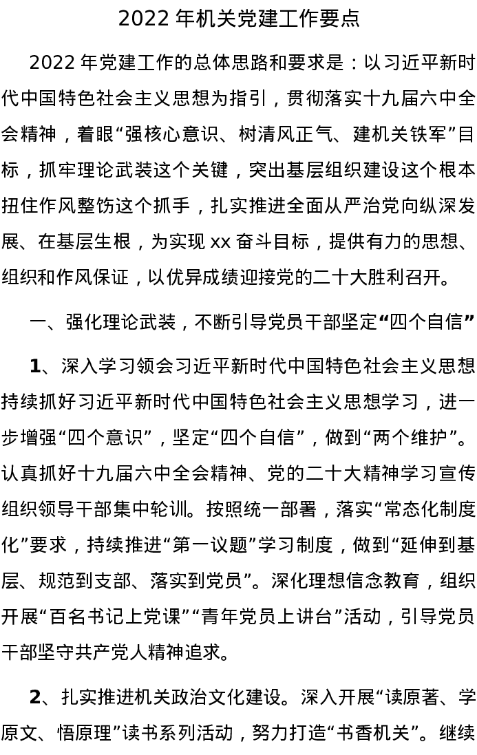 20220101-2022年机关党建工作要点