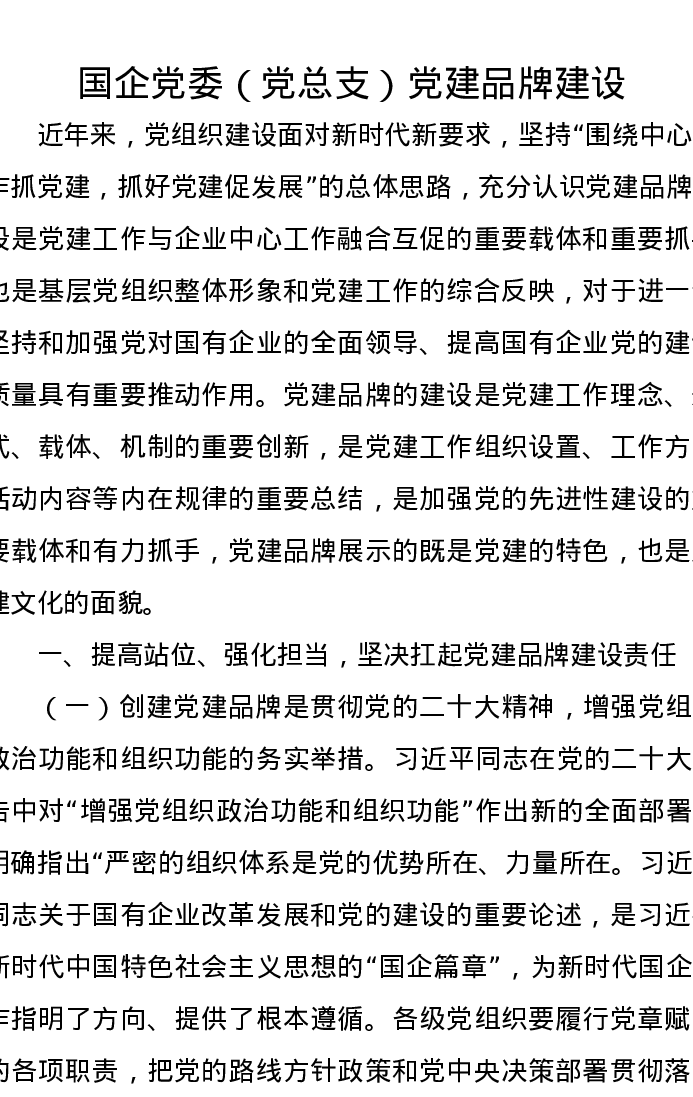 国企党委(党总支)党建品牌建设汇报