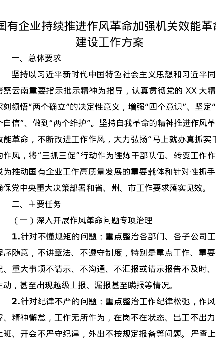 国有企业持续推进作风革命加强机关效能革命建设工作方案
