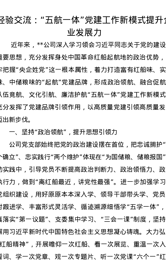 经验交流:“五航一体”党建工作新模式提升企业发展力