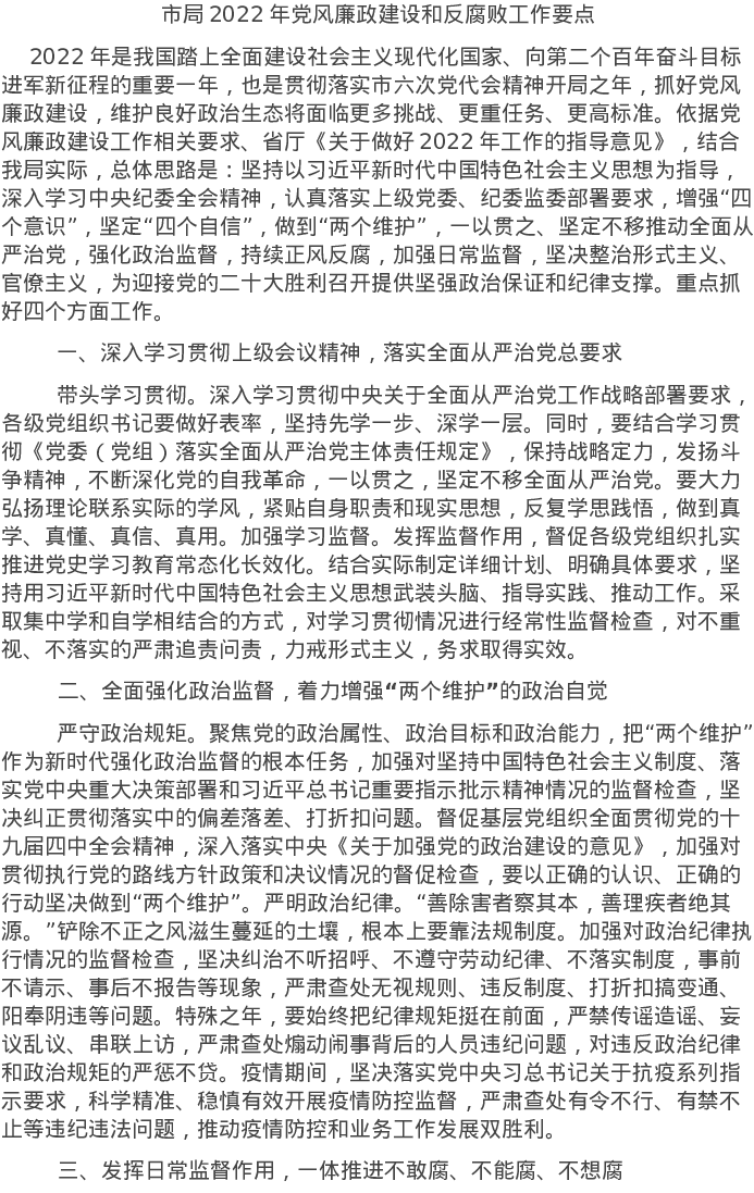 20220123市局2022年党风廉政建设和反腐败工作要点