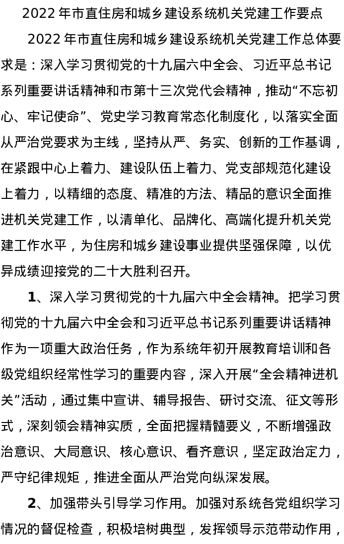 20220204-2022年市直住房和城乡建设系统机关党建工作要点