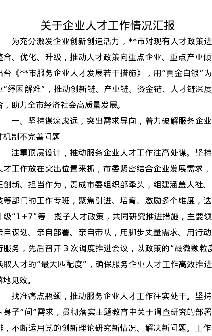 关于企业人才工作情况汇报
