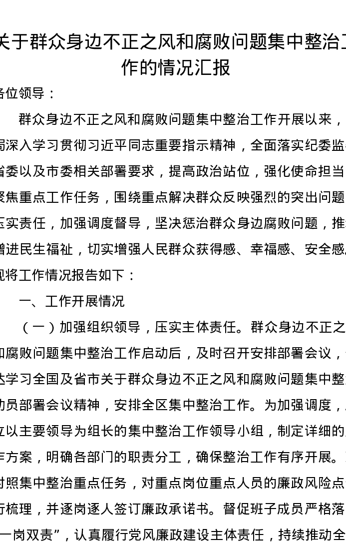关于群众身边不正之风和腐败问题集中整治工作的情况汇报