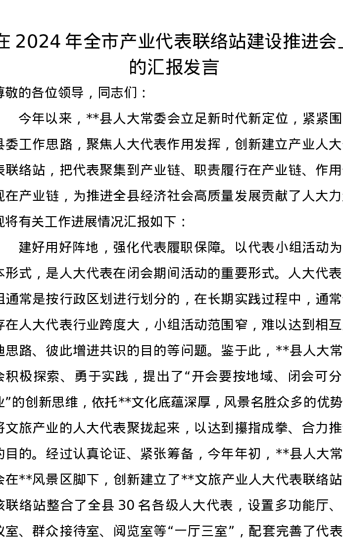 在2024年全市产业代表联络站建设推进会上的汇报发言