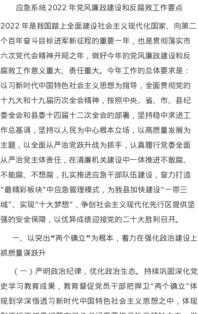 20220212应急系统2022年党风廉政建设和反腐败工作要点