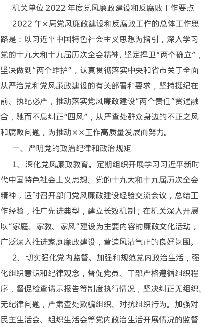 20220214机关单位2022年度党风廉政建设和反腐败工作要点