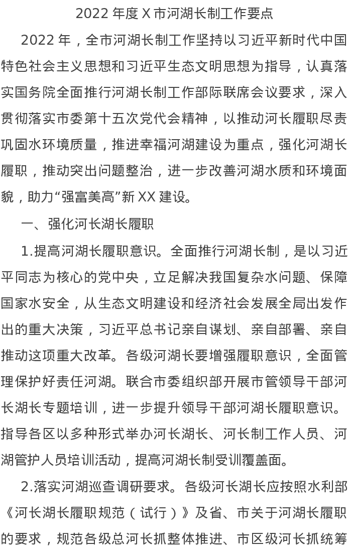 20220217-2022年度X市河湖长制工作要点
