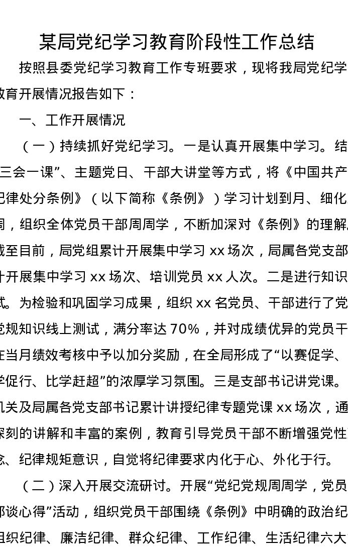 某局党纪学习教育阶段性工作总结