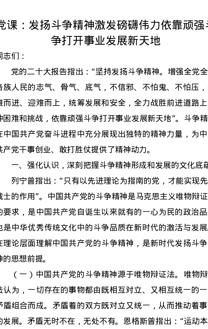 党课讲稿:发扬斗争精神激发磅礴伟力依靠顽强斗争打开事业发展新天地