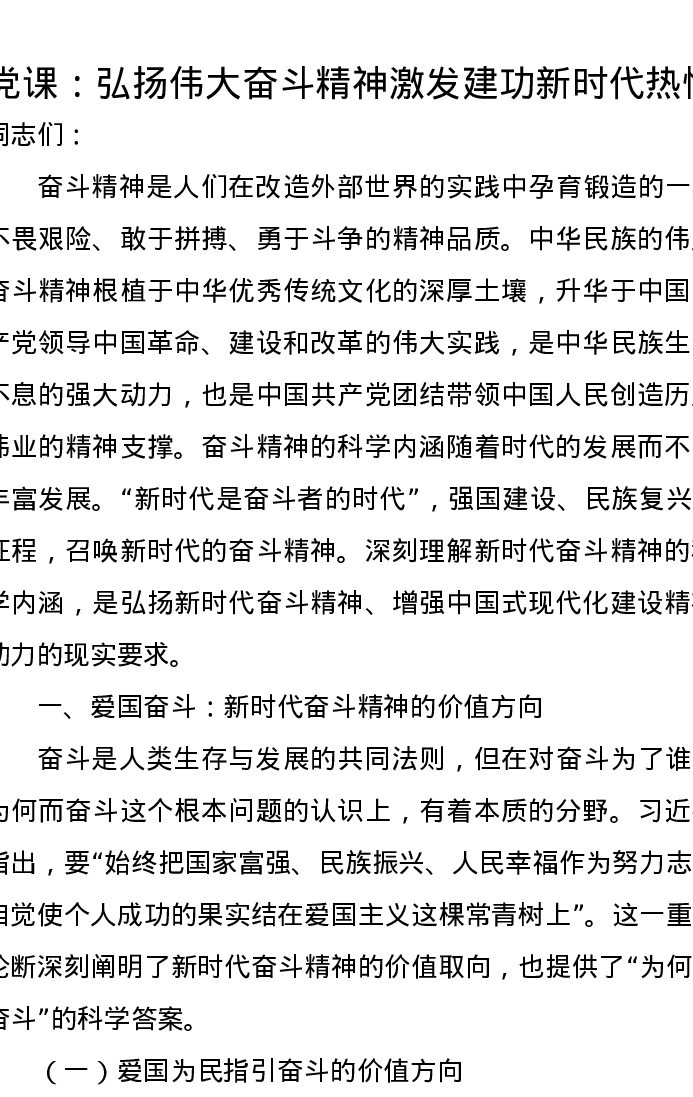 党课讲稿:弘扬伟大奋斗精神激发建功新时代热情