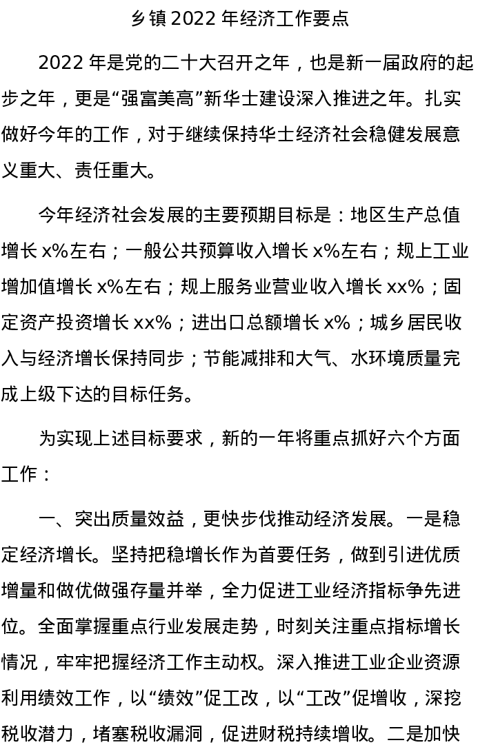 20220219乡镇2022年经济工作要点