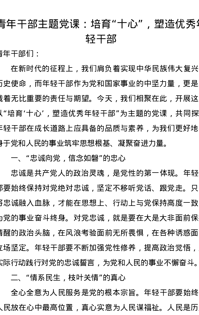 青年干部主题党课:培育“十心”,塑造优秀年轻干部