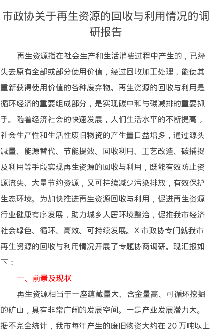 市政协关于再生资源的回收与利用情况的调研报告