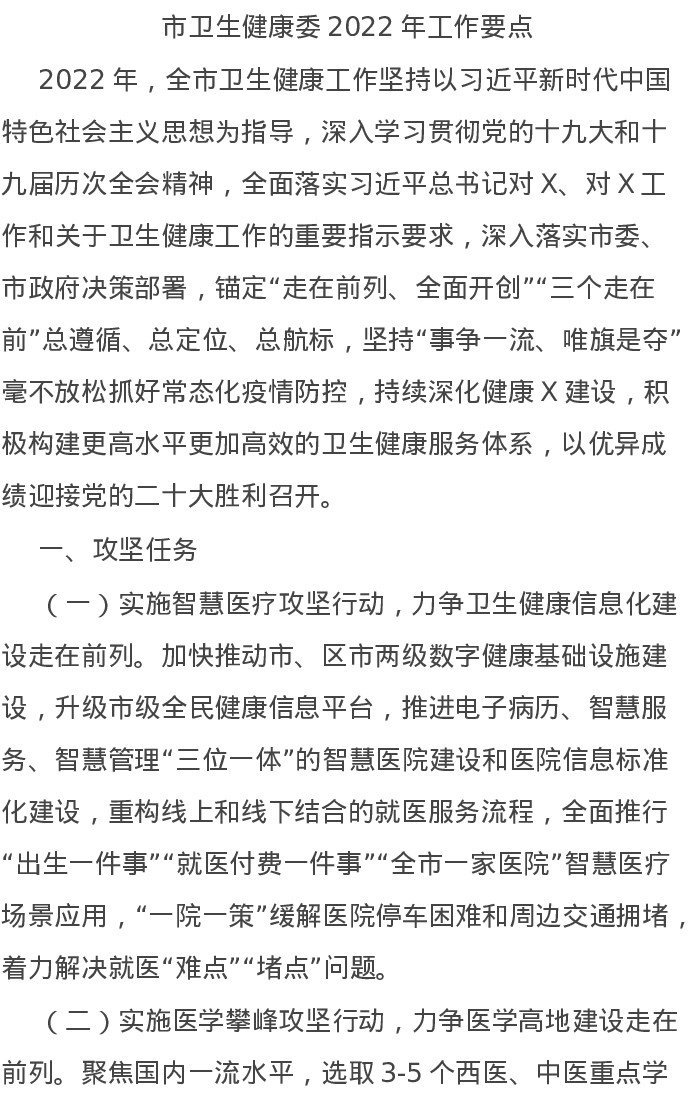 20220221市卫生健康委2022年工作要点