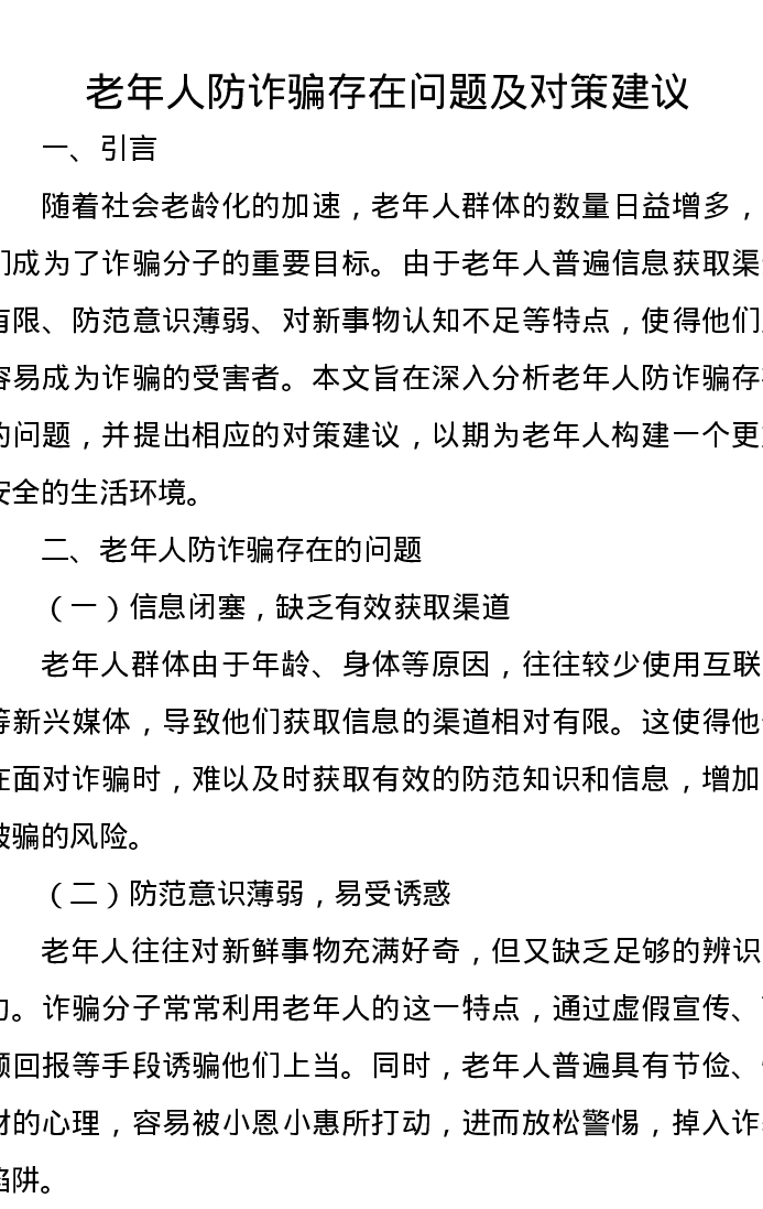 调研报告:老年人防诈骗存在问题及对策建议