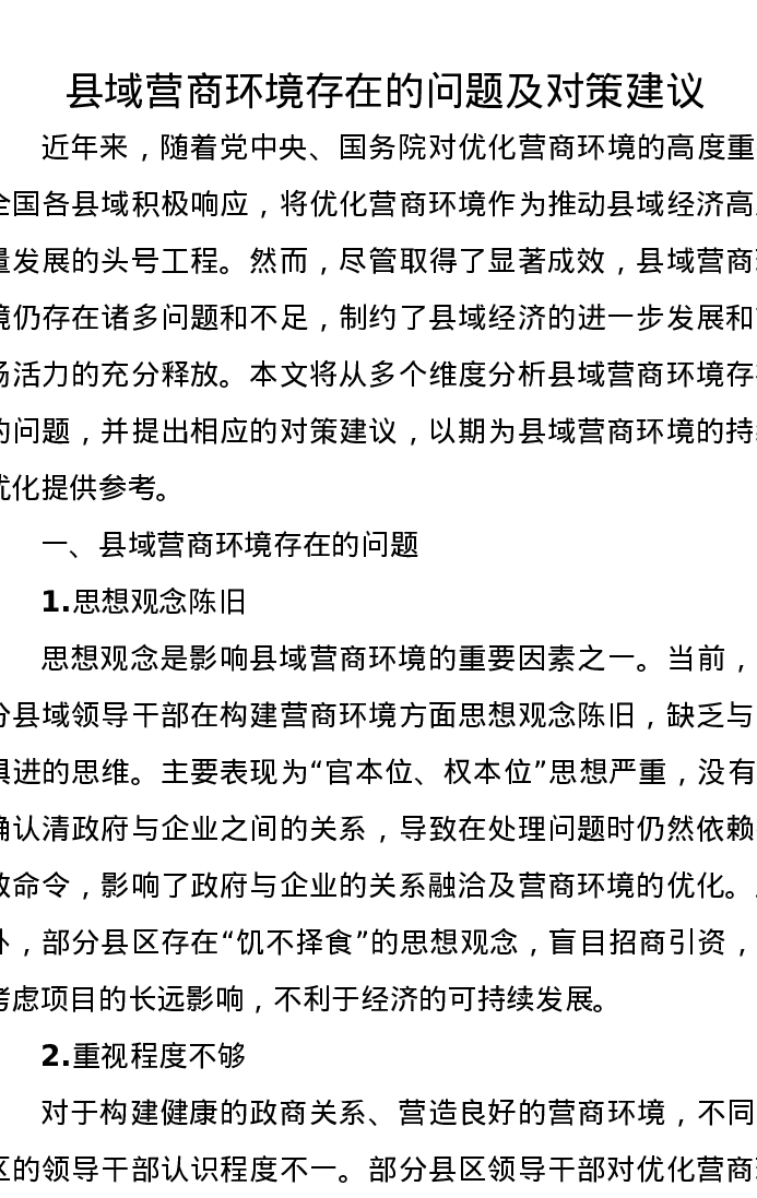 调研报告:县域营商环境存在的问题及对策建议