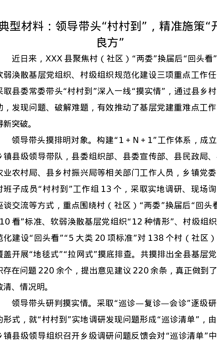 典型材料:领导带头“村村到”,精准施策“开良方”