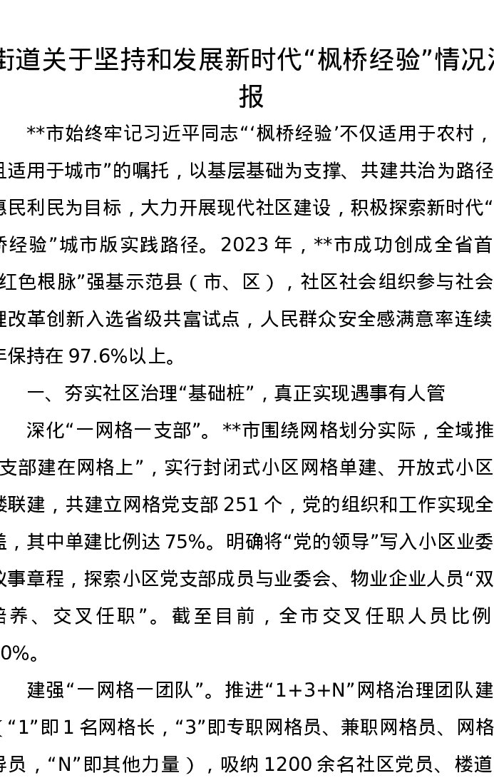 街道关于坚持和发展新时代“枫桥经验”情况汇报