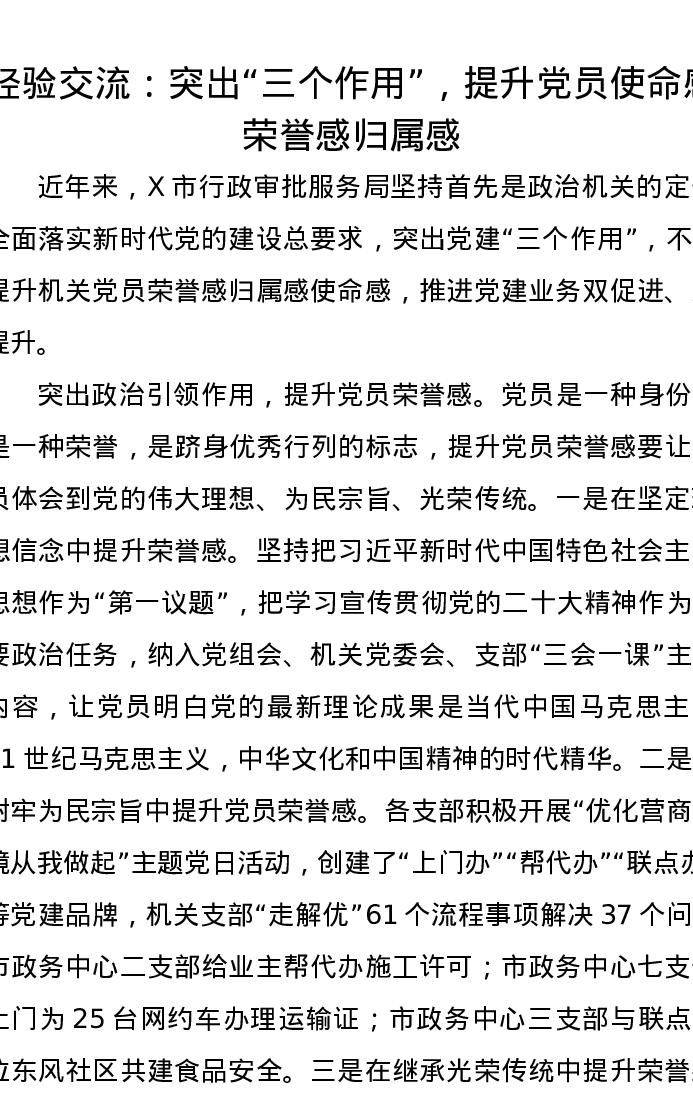 经验交流:突出“三个作用”,提升党员使命感荣誉感归属感