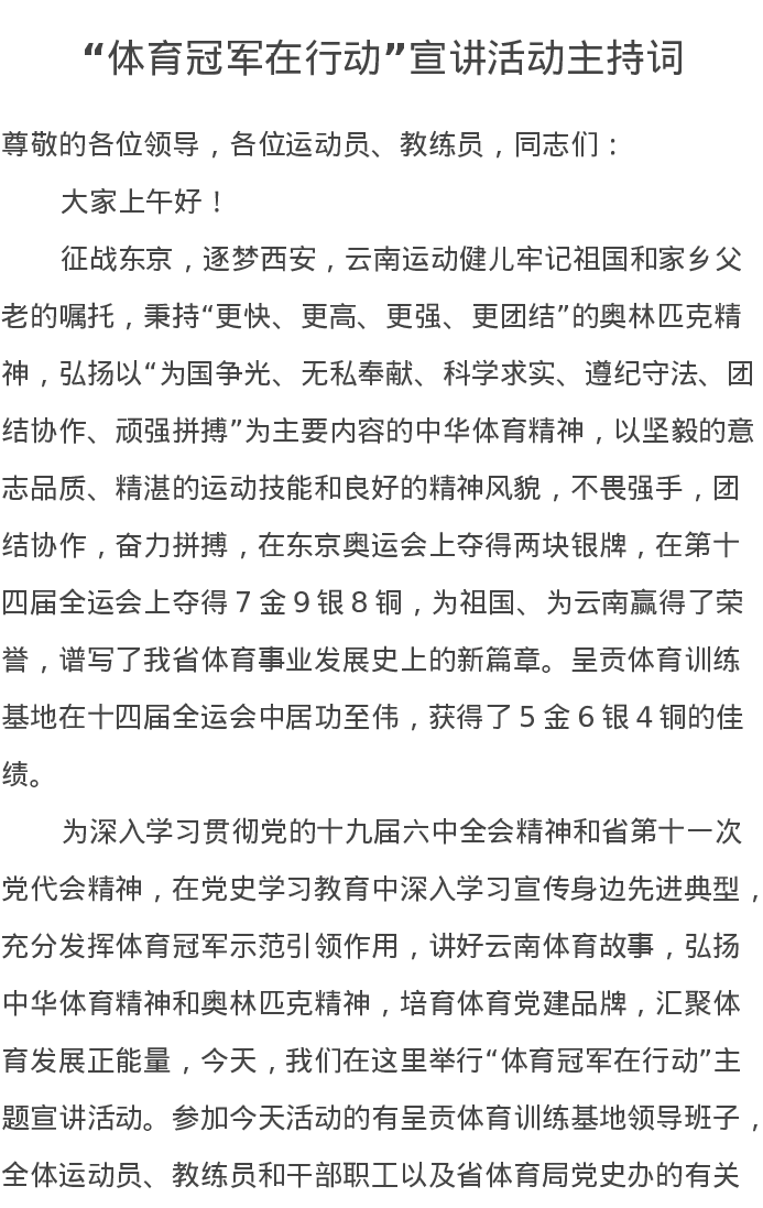 “体育冠军在行动”宣讲活动主持词