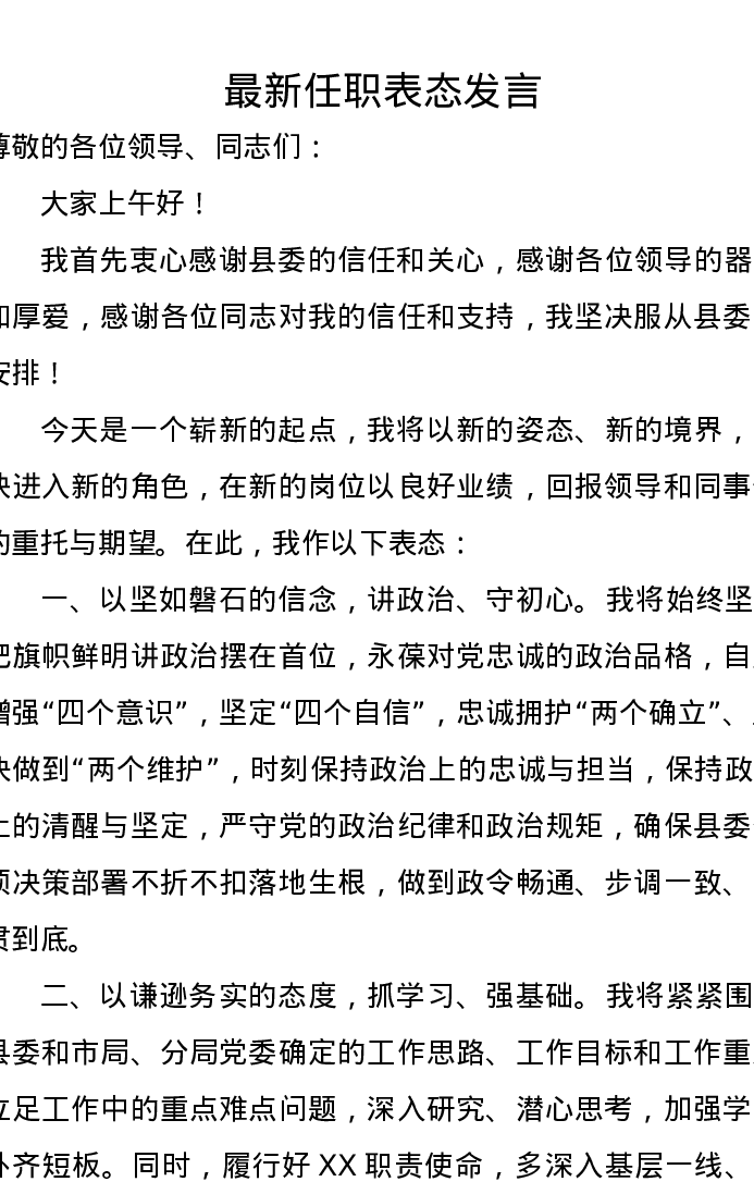 最新任职表态发言