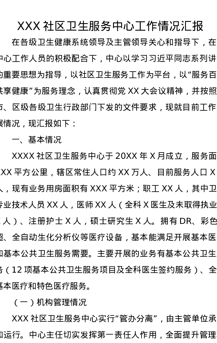 XXX社区卫生服务中心工作情况汇报