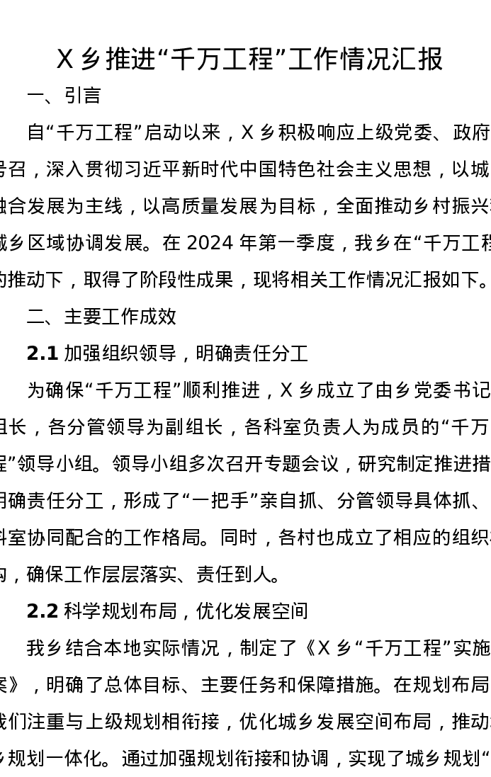 X乡推进“千万工程”工作情况汇报