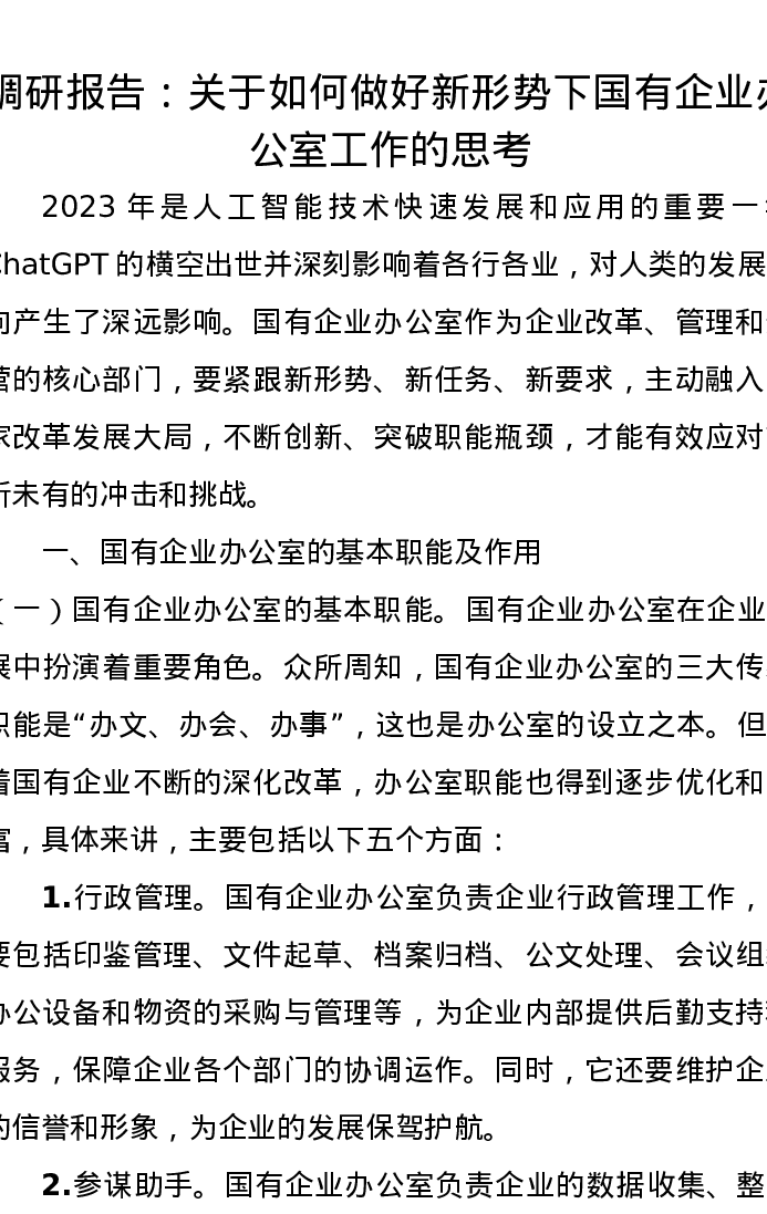 调研报告:关于如何做好新形势下国有企业办公室工作的思考
