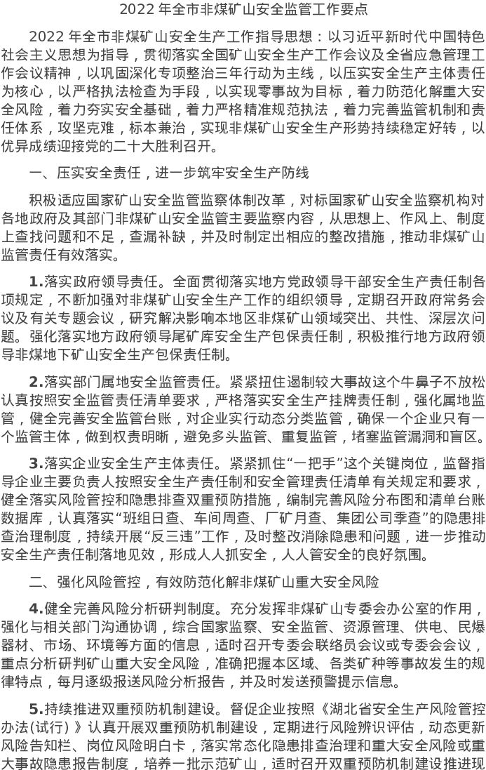 20220306-2022年全市非煤矿山安全监管工作要点