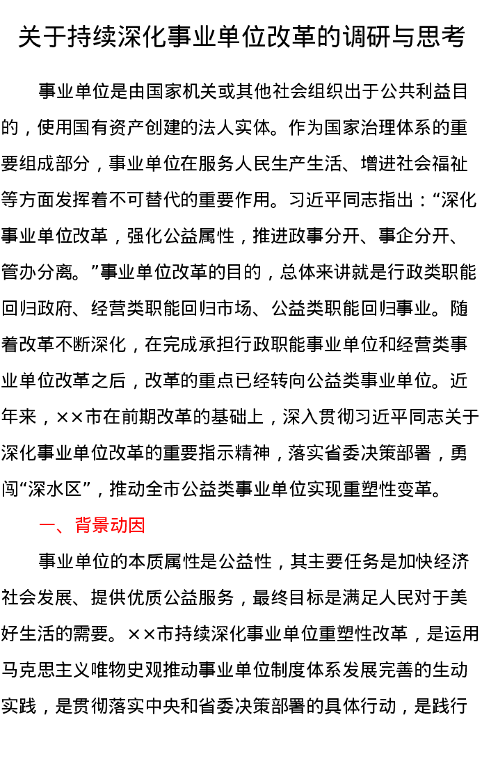 调研报告:关于持续深化事业单位改革的调研与思考
