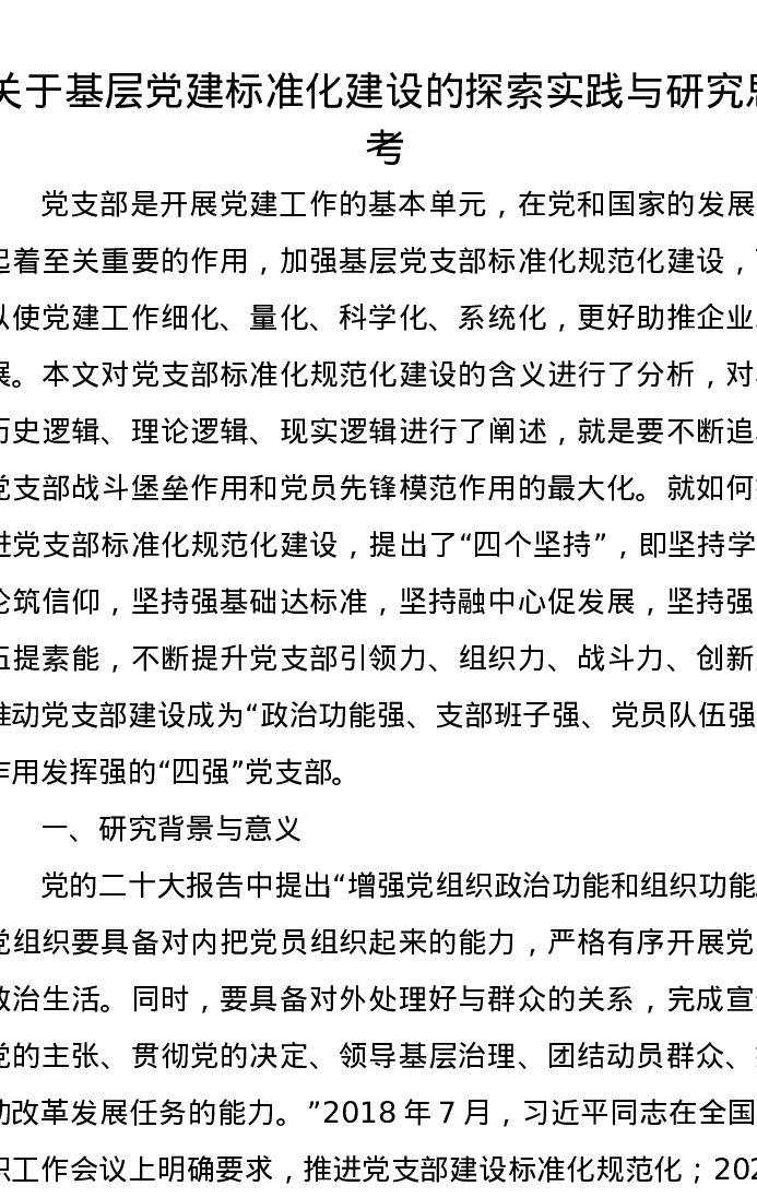 调研报告:关于基层党建标准化建设的探索实践与研究思考