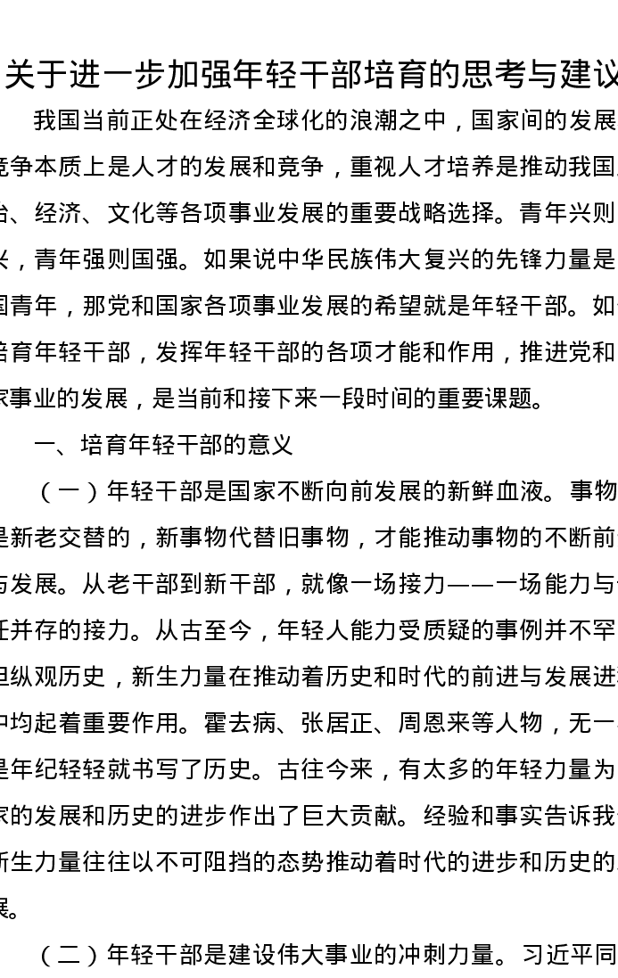 调研报告:关于进一步加强年轻干部培育的思考与建议
